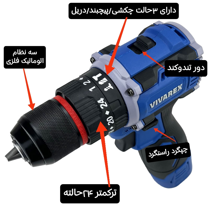 دریل شارژی چکشی براشلس 16.8 ولت ویوارکس گارانتی دار VR1608-blx
