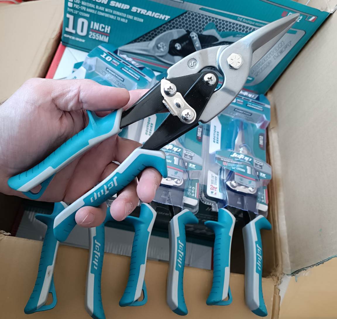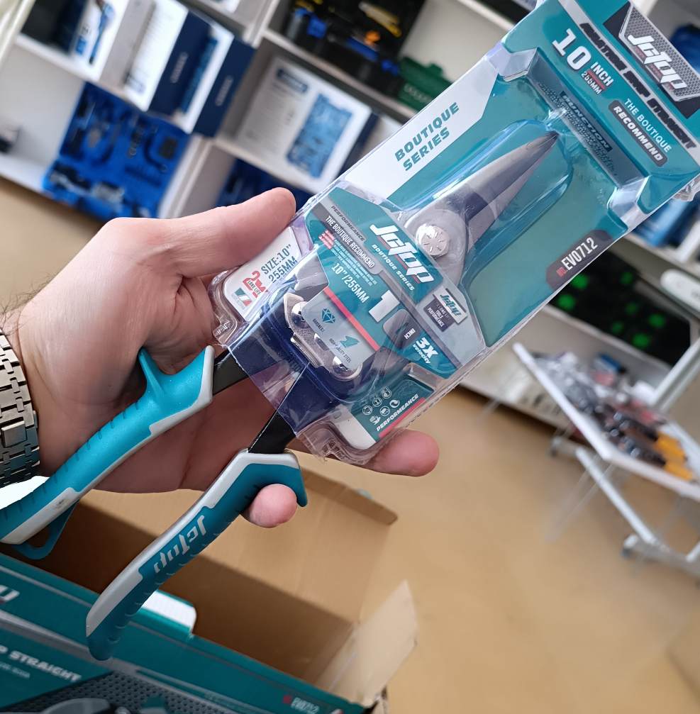 قیچی کناف کاری (کنف) – قیچی حلبی بری – قیچی ورق بری – دماغه مستقیم – برند اصلی JcTop رنگ آبی